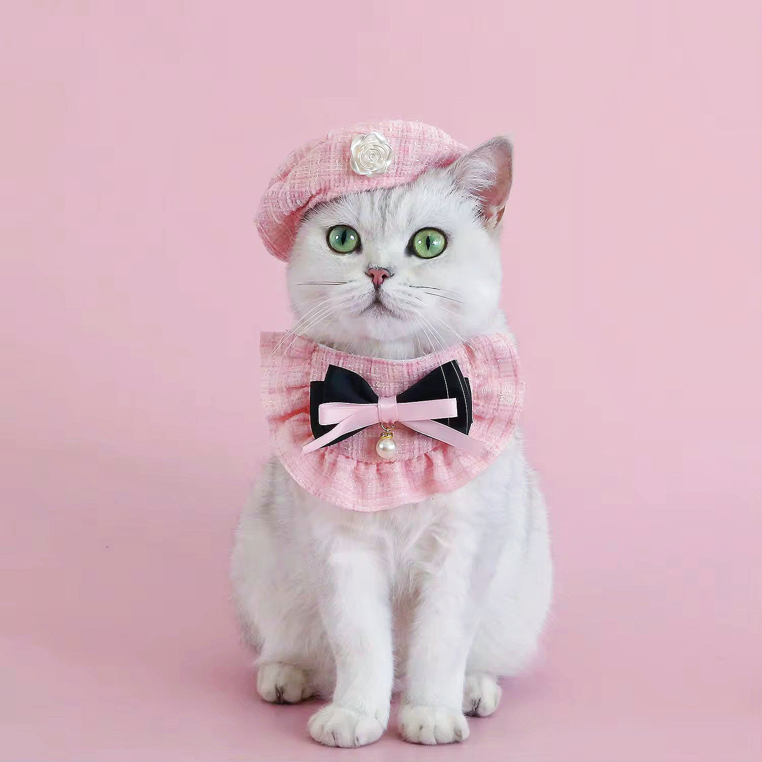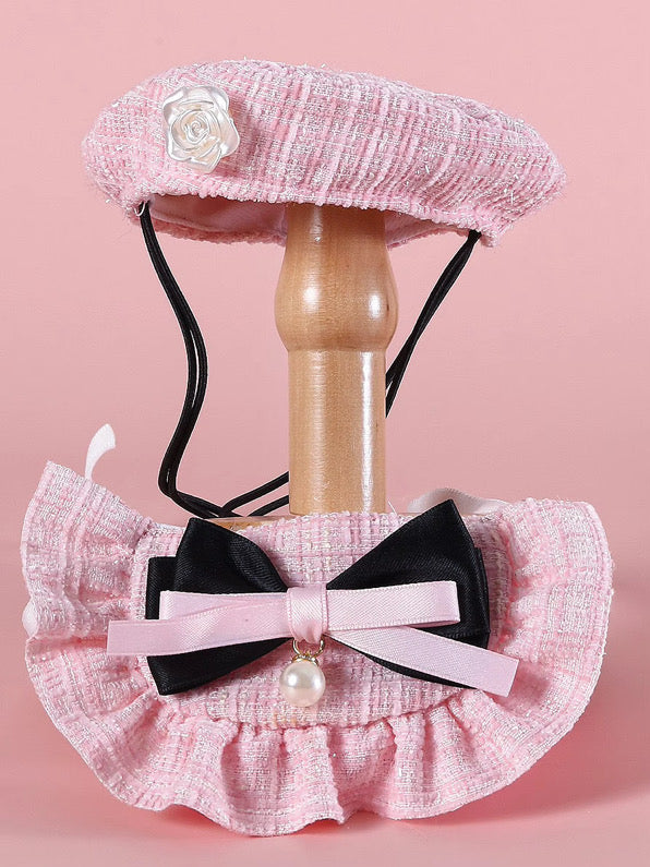 The tweed beret features an adjustable drawstring for a secure fit, paired with a tie-on bandana designed to comfortably fit dogs and cats of various sizes. Suitable for most small to medium pets. This outfit is perfect for celebrations and everyday cuteness overload.