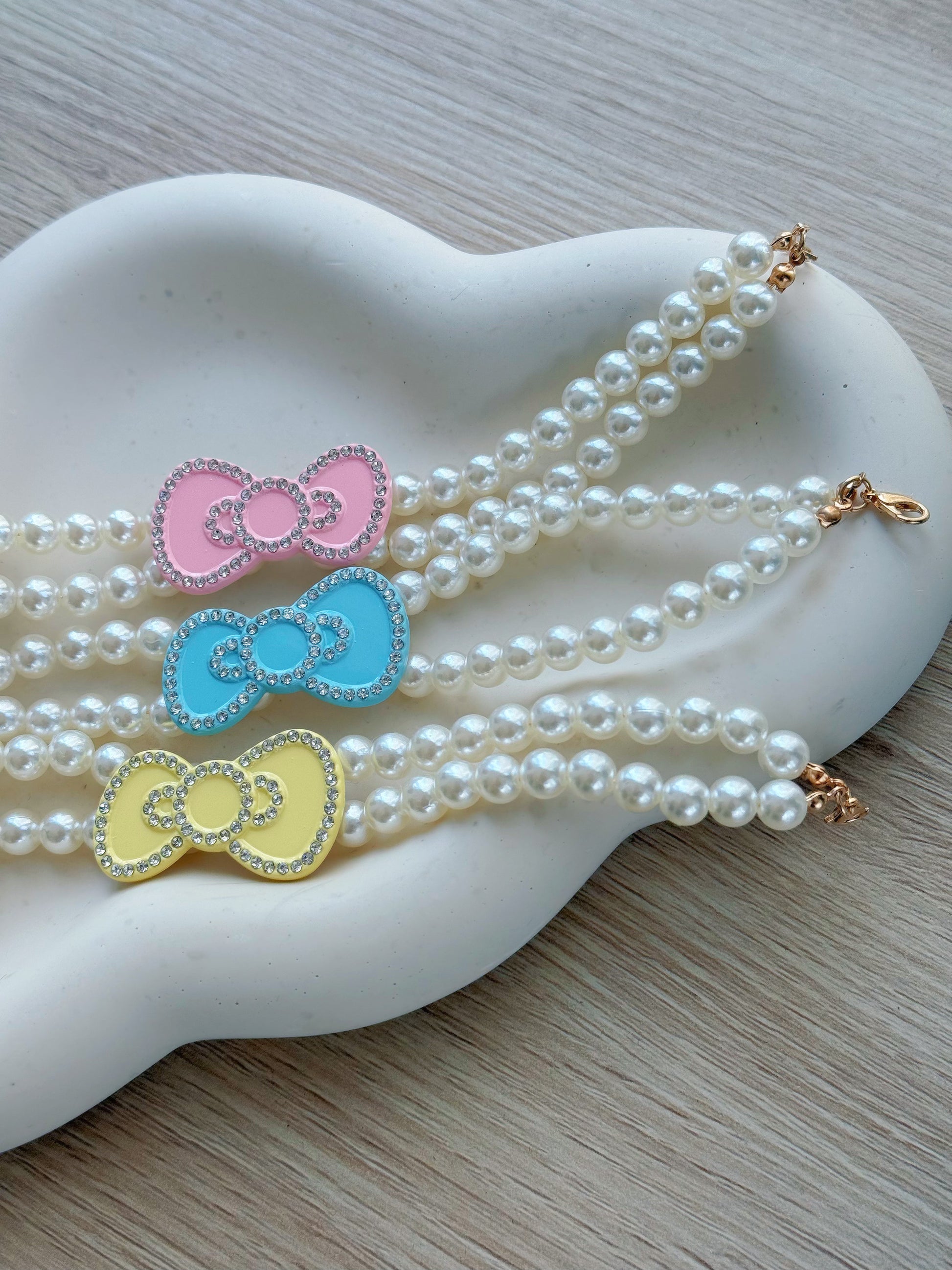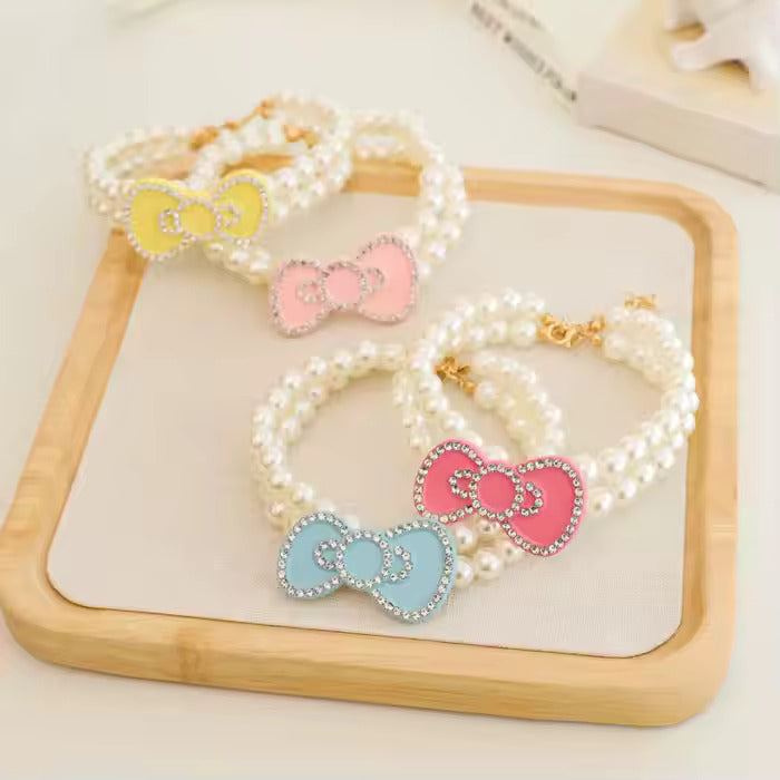 Elevate your pet’s style with our elegant resin bow pearl necklace! Featuring a delicate string of faux pearls and a glossy resin bow centrepiece, this necklace brings a playful yet polished look to your furry friend’s wardrobe.